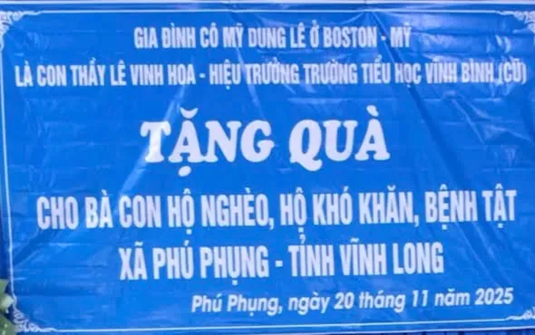 Ngày 20/11, chị Lê Mỹ Dung, CHS Trung học Chợ Lách hiện ngụ tại Boston (Hoa Kỳ) đã về quê xã Phú Phụng (Vĩnh Long) phát 200 phần quà cho bà con quê nhà. Được biết chị Lê Mỹ Dung là con thứ tư của thầy Lê Vinh Hoa dạy nhiều năm tại trường Tiểu Học Vĩnh Bình (xã Vĩnh Bình cũ). UBMT TQ xã đã trao bằng khen cho chị.